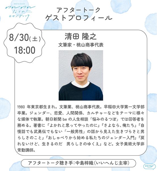 2025年8月30日(土) 18:00公演終演後 ゲスト:清田隆之(文筆家)