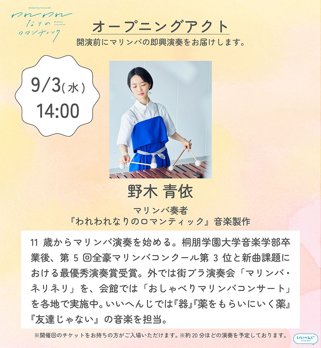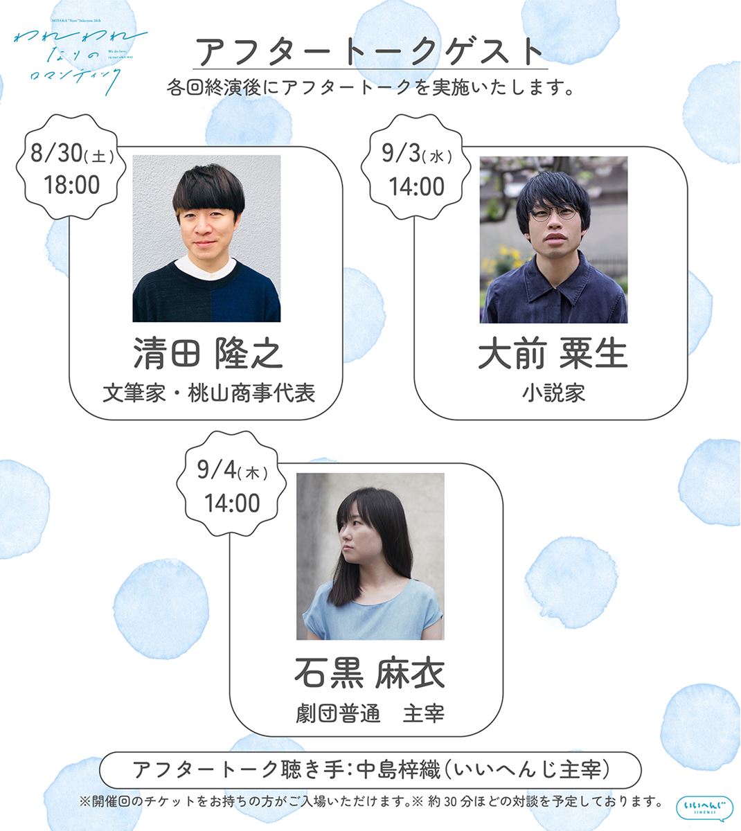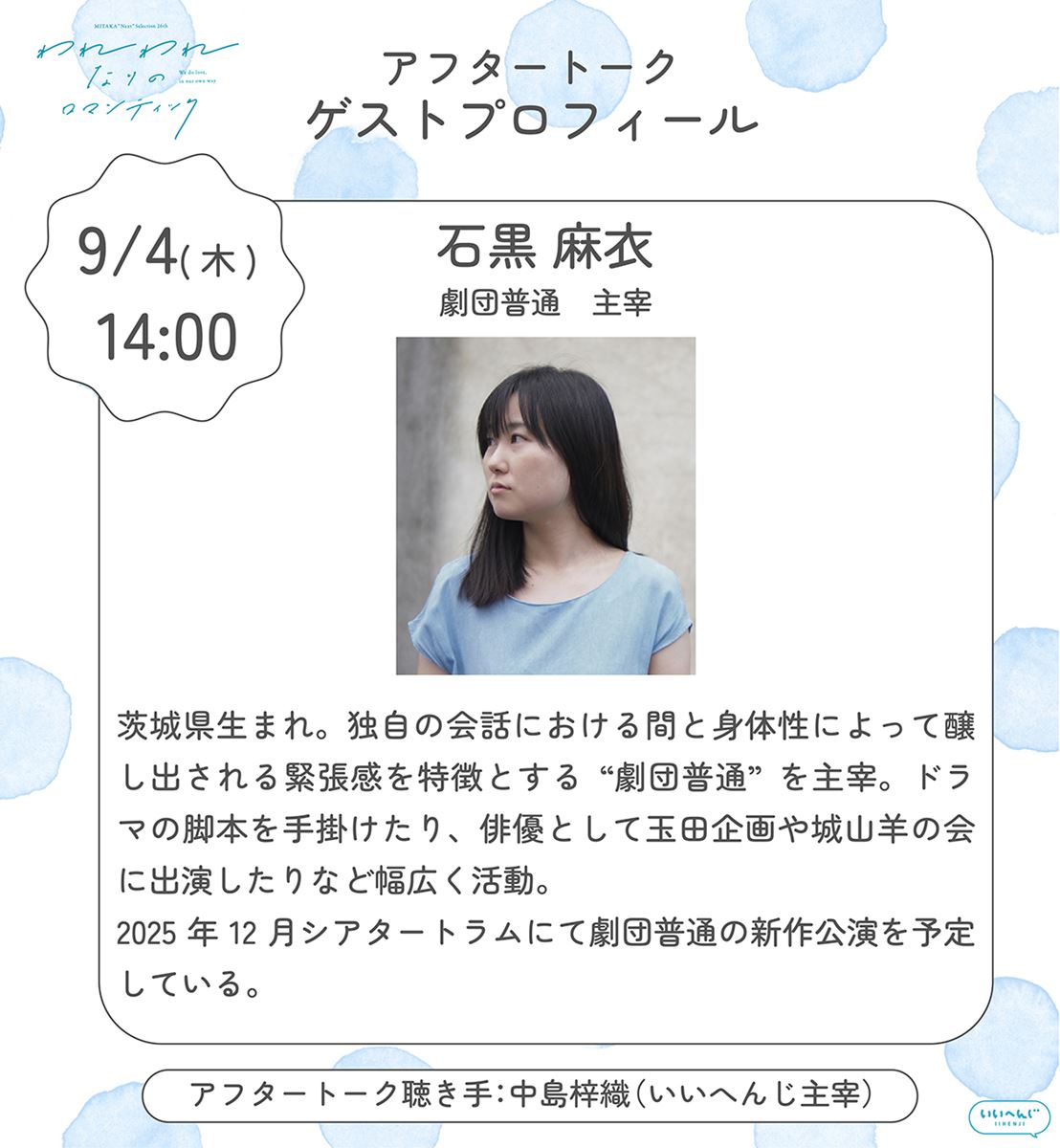 いいへんじ『われわれなりのロマンティック』アフタートークに劇団普通の石黒麻衣らが登壇 野木青依によるオープニングアクトも決定