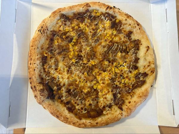 実際に箱を開けてみると、まず驚かされたのはその見た目。ピザ全体に広がる照り焼きチキンの存在感もさることながら、思っていた以上にコーンがたっぷり!