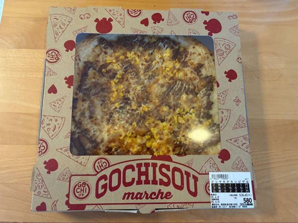 ロピアの惣菜コーナーで、思わず足を止めた大判ピザ。「テリヤキチキンピザ」という商品名のとおり、甘辛い照り焼きチキンとたっぷりのチーズ、コーンがどっさり。