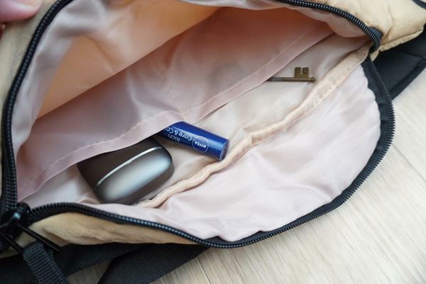 ひとつだけなので、小物類の整理整頓がやや難しい側面も。バッグインバッグとの併用がおすすめです。