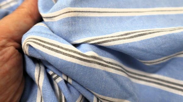 立ち姿もエレガントに見えて良いですが、歩くとふわっと風をはらむのも涼しげでいい感じ!筆者が購入したブルー系ストライプ柄は着やせ効果もあり、涼しさと見た目の軽やかさを両立したデザインだと思いました。