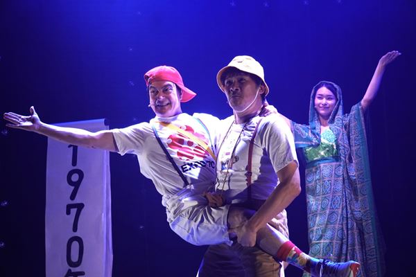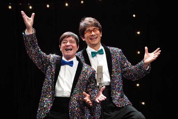 川平慈英と伊原剛志が結成した漫才コンビ「なにわシーサー's」による“漫才ミュージカル”が開幕