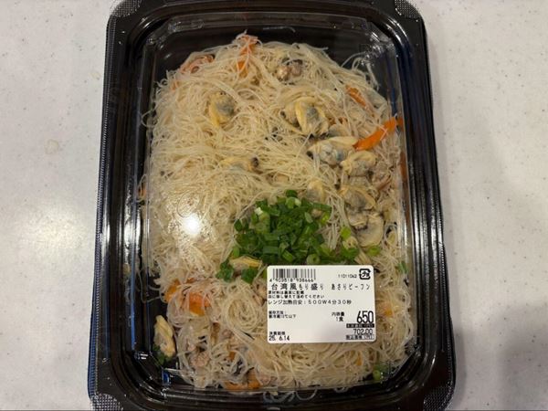 ロピアの惣菜コーナーで、透明パックの向こうにぎっしり詰まった山のようなあさりが目に飛び込んできた瞬間、思わず手に取ったのが「台湾風もり盛りあさりビーフン」。