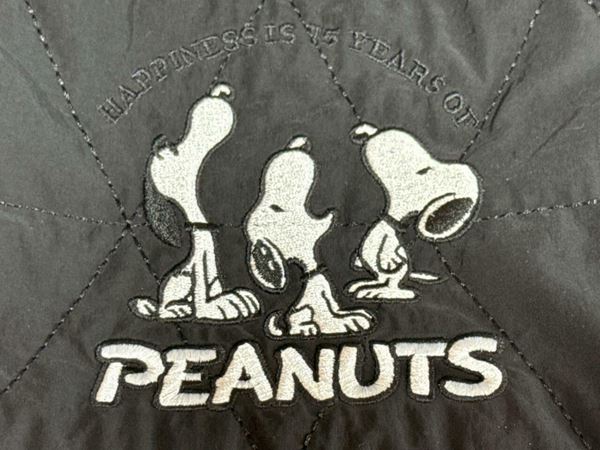 前面の下部には、かわいいスヌーピーの刺繍入りデザインです。歴代の3人のスヌーピーの刺繍がかわいすぎる〜!左側の細面のスヌーピーは今の姿とだいぶ面差しが違いますよね!