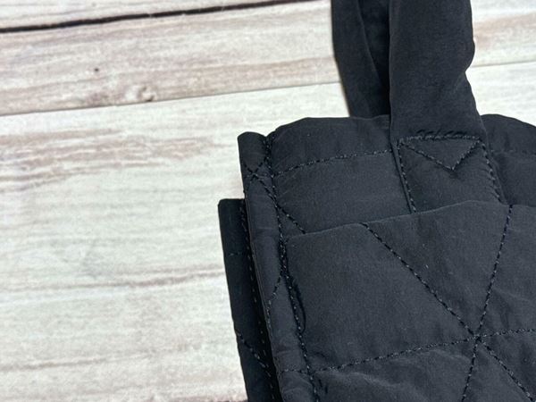 表地の素材はナイロン。シャカシャカした手触りのカジュアルな印象の生地ですが、三角模様のキルティング素材がおしゃれ!