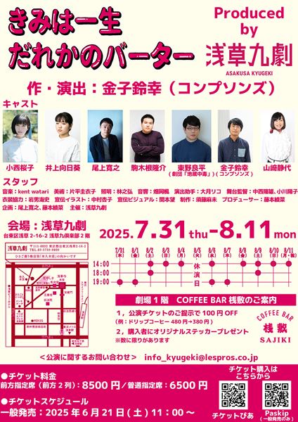 すべて見る7月31日(木)から浅草九劇にて『きみは一生だれかのバーター』が上演される。本作は浅草九劇プロデュースによる芸能界を舞台としたサスペンスコメディ。第68回岸田國士戯曲賞にノミネートされたコンプソンズの金子鈴幸が初めて劇団外で作・演出を務めることでも注目を集めている。金子と、企画から本公演に関わり、キャストとしても出演する尾上寛之に作品の成り立ちと魅力を聞いた。