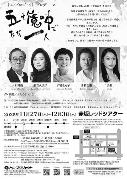 トム・プロジェクト新作『五十億の中で ただ一人』上演決定 大和田獏、藤吉久美子らが出演