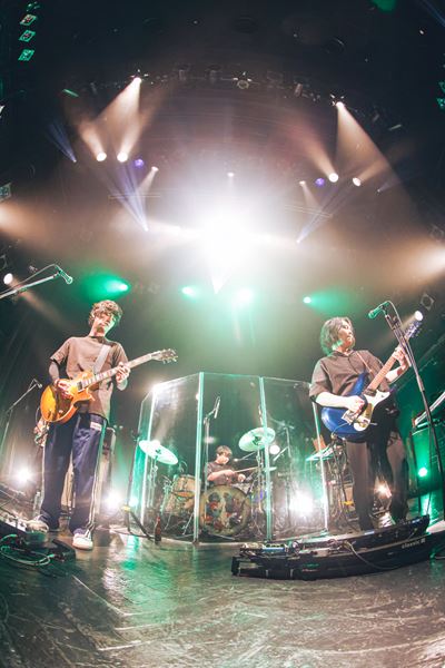久方ぶりのワンマンライブに、1曲目「やめちゃる」の歪んだギターが場内に響きわたると歓声とともにフロアからシンガロングが起きた。尾崎雄貴(vo/g)、DAIKI(g)、尾崎和樹(ds)に加え、サポートで岡崎真輝(g/Galileo Galilei)とYohey(b/Newspeak)という布陣はもはや鉄壁と言っていいバンド感となっているが、それにも増して今回のライブやバンドが放つムードは高揚感に溢れ、同時にフレンドリーで、ライブの頭からその場の空気が柔らかにほどけていく感覚を帯びていた。