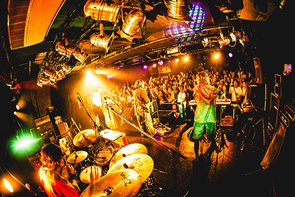 そんな丸裸で楽しむフロアを見て「調子良さそうですね、皆さん!」と3人も上機嫌そう。いや楽しくパフォーマンスするステージを見てると、フロア側ももっと踊らなきゃ!って本能的に思うんですよ。加えて成瀬のブレないリズムカルなドラムがサウンド全体を引き締めているのも、安心して身を委ねるポイントの1つになっている。「色欲」の最後はマサが囁くように歌って終わるのもクール。大きな歓声と拍手が起こった。