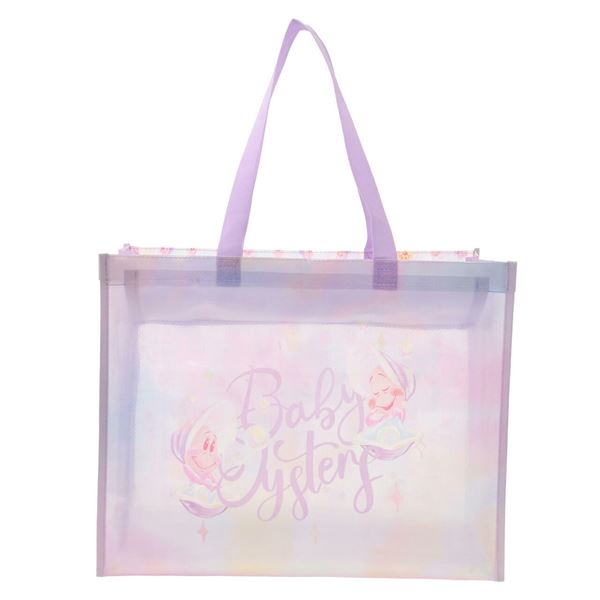 透明感のあるバッグには、ヤングオイスターを総柄でプリントし、中にはセイウチの姿も見えます。
