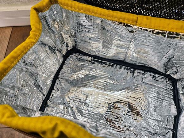 内側にはアルミラミネート加工が施され、断熱効果もバッチリ。さらに、断熱材には水を吸わない軽量なポリエチレンフォームを使用しており、保冷・保温どちらにも対応します。