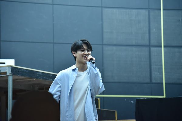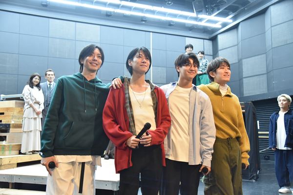 開幕まで10日余りとなったこの日は、初めて本番で使われる衣装を着用しての通し稽古となった。冒頭の前説で劇中、GRe4N BOYZの7曲もの楽曲がライブ形式で使用されること。舞台後方のスクリーンには歌詞も映し出されるので、観客も一緒に歌うことができるということが説明される。