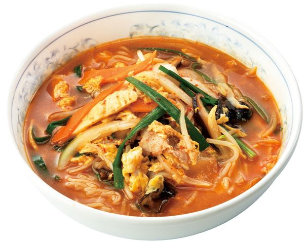 10位にランクインしたのは、ぎょうざの満洲でも人気を誇る麺類! 文字通り旨辛味のスープとたっぷりの野菜と共にいただく麺メニューです。野菜は165gで、卵も入っているので栄養もたっぷり。