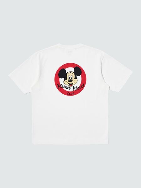フロントは白地にミッキーマウスクラブのグラフィックをおしゃれにプリントし、日常使いしやすい1枚になっています。