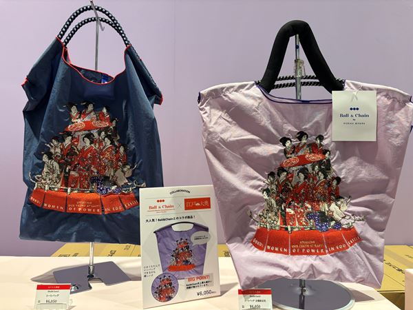 おしゃれでエコなショッピングバッグで大人気のBall&Chainとのコラボバッグ。展覧会のメインビジュアルが刺繍で施されており、華やかで高級感のある仕上がりに。紫(写真右)は会場限定販売カラー。