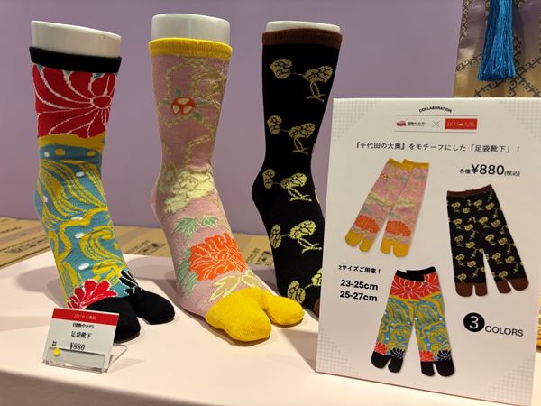 浮世絵『千代田の大奥』をモチーフにした足袋靴下は、和雑貨・アパレルブランドの倭物やカヤとのコラボ商品。カラフルな和柄で、コーディネートのアクセントに活躍しそう。2サイズあり。