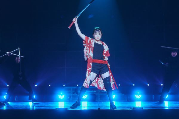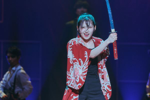 今回、主人公の沖田総司を演じるのは、今年6月にAKB48を卒業したばかりの村山彩希。グループ卒業後、初の舞台単独主演を務める。オープニング、舞台中央奥から登場した村山は、舞台つらにある菊一文字宗春を引き抜くと、ダンス、歌、激しい殺陣と矢継ぎ早に見せ場を披露し、鮮烈な幕開けを印象付けた。