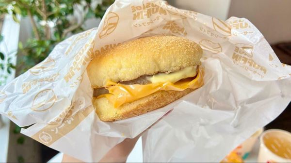 モーニングっぽさを感じられるイングリッシュマフィンのバンズに加え、スパイスの効いたソーセージがたまらなく食欲をそそるんです。朝から背徳感を感じられながらも低価格でシンプルに楽しめるメニューだと感じました。