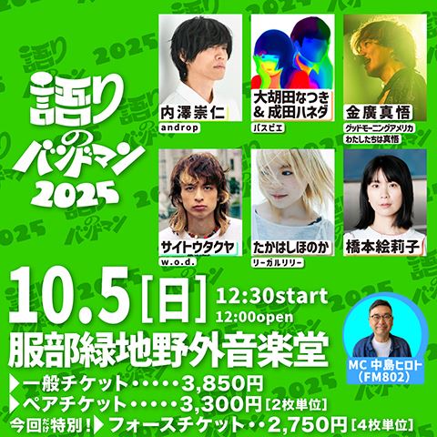 「語りのバンドマン 2025」待望のアコースティックイベント、大阪・服部緑地野外音楽堂にて開催決定!