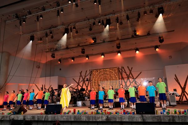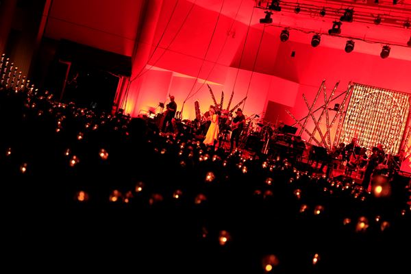 日没とともに、ステージセットや観客全員に配られた無数のキャンドルの灯りによる幻想的な空間が、会場全体に広がる。ステージ上には、キャンドルと共に徳島の竹あかり作家「たけの花」の作品が、鮮やかでありながら繊細な灯りの花を咲かせた。あたたかな灯りにつつまれるなかで披露された代表曲「アイノカタチ」では、観客がキャンドルを手に歌詞を口ずさむ姿も見られた。