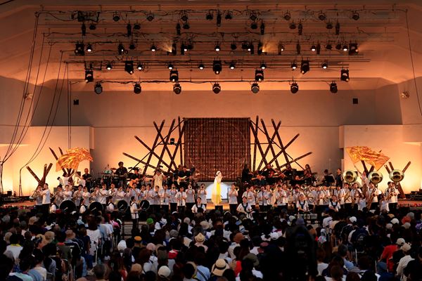 さらに、長崎県の活水中学校・高等学校吹奏楽部(かっすいちゅうがっこう・こうとうがっこうすいそうがくぶ)のマーチングバンド総勢53名とパフォーマンスを披露したのは、矢野顕子作詞・作曲の「希望のうた」。平和を願い、希望の火を灯していくようなMISIAの歌声が長崎の空に響いた。