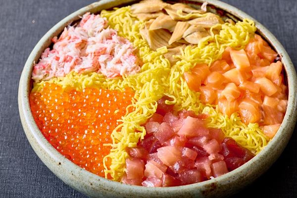 ・寿司(平日ランチ:サーモン親子ちらし/土日祝日ランチ限定:海鮮ちらし/ディナータイム:にぎり寿司 鮪、イカ、海老、こはだ)