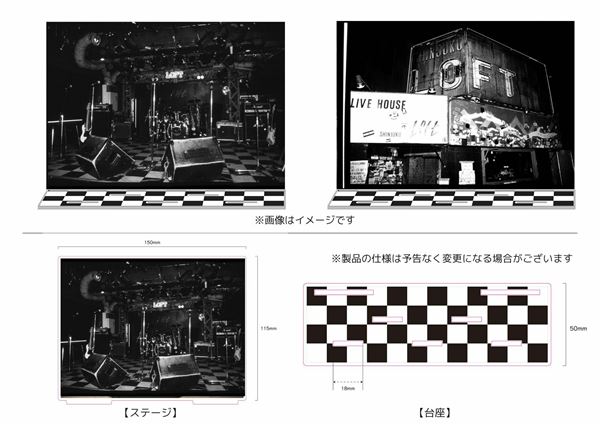 『SHINJUKU LOFT 50TH ANNIVERSARY PRE-EVENT SINCE 1976』の開催を記念し、西新宿ロフト時代の看板、ステージ写真を使用したオリジナルアクリルスタンドが商品化。台座は新宿ロフトのトレードマークである市松模様。アクスタの差し込み口が5つあり、最大5体の推しを立たせることが可能。