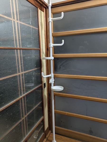 設置後は固定ピンと安全ボルトでしっかり固定できるので、アウターやバッグなど重い物も安心して掛けられます。ただし「ねじ式ポールに比べると固定力はやや弱め」と感じる人もいるようなので、設置時は丁寧に調整するのがおすすめです。