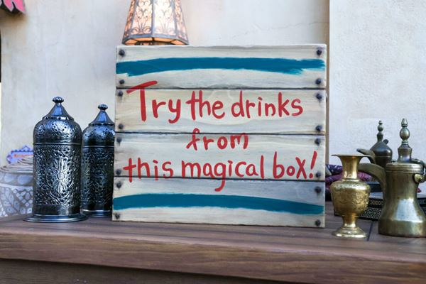 “Try the drinks from this magical box!”と書かれた看板があり、アラビアンコーストにぴったりなデザイン!