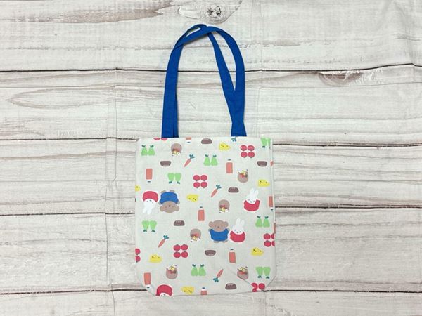持ち手のカラーはビビッドなブルー。バッグ本体のベージュカラーと持ち手のブルーの配色が、ミッフィーグッズらしくおしゃれな印象です。