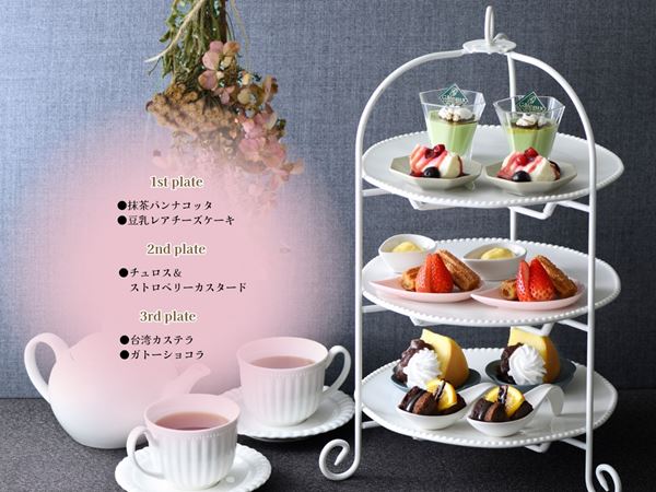 さらにしっとりと優しい甘さの「台湾カステラ」をはじめ、「抹茶パンナコッタ」、「ガトーショコラ」など、和と洋のラインナップをちりばめた、『スイーツスタンド』が提供されます。
