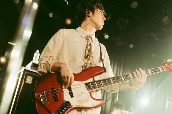 2度目のMCは「ライブは楽しいですね。汗で前髪がなくなった。そのうち眉毛もなくなるけど、気にせず御覧ください(笑)。」(えみそん) からスタート。テーマは“ツアーの振り返り”だったのだが、涼平さんがキムタクに似ているらしい、うどんを3食連続で食べた、物販のお客さんに「コロナ禍以降、久々に来ました」という人がいた、ライターさんに「大学生のサークルバンドみたいだな」と書かれて、その通り!と思った......と話がアチコチいきまくり、まったくまとまらず。このワチャワチャした感じもフレンズの楽しさだ。