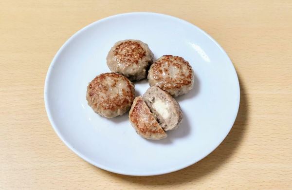 さっそくレンジで加熱して食べてみると、お肉はふんわり柔らかく、中のチーズはとろとろ&なめらか。3種のお肉の旨み、タマネギの甘み、チーズのミルキーな風味が一体となった、濃厚な味わいですね。
