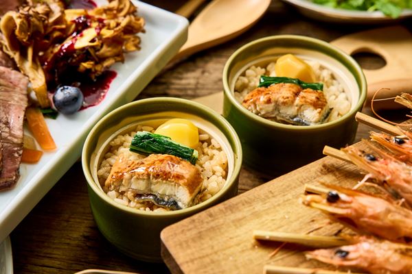 おうみ海老の岩塩焼き、鱧カツバーガー、うなぎと栗のおこわなど、秋の収穫の恵みを思う存分堪能することができます。