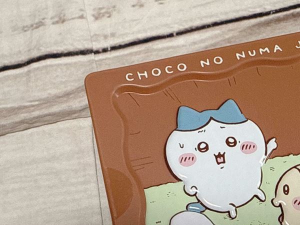 「お宝探し編」は、ある日ハチワレが見つけた宝探しに、ちいかわたちが挑戦するエピソード。蓋には、冒険の序盤で出会ったチョコの沼でのワンシーンが描かれています。