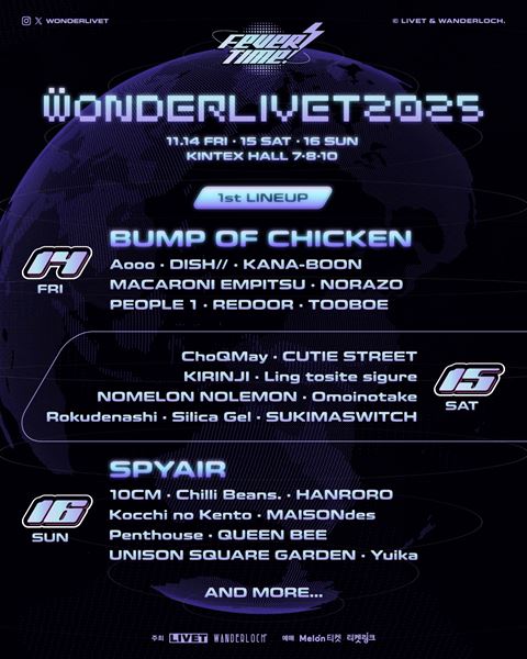 韓国最大規模のJ-POP&Iconic Artist フェスティバル『WONDERLIVET 2025』開催決定 BUMP OF CHICKEN、SPYAIRらが出演