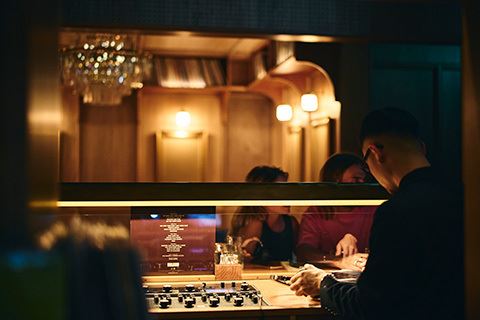 銀座店が夜を彩るバー空間であるのに対し、京都店は正午から深夜まで営業。ビストロ料理や鮨のおまかせコースを提供し、⾳楽を中⼼に据えながら、飲食と文化体験を拡張する世界に類を見ない試みを実現。空間には、独自開発のスピーカーとヴィンテージ機材を融合。音楽が持つ力を最大限に引き出し、唯一無二の体験を創出。クラブでもなく、レコードバーでもない――そのどちらにも属さない新しいスタイルを体現している。