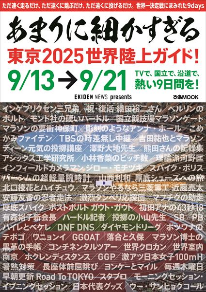 駅伝ファンの絶対的な支持を得ている『あまりにも細かすぎる箱根駅伝ガイド!』の『東京2025世界陸上』版がこの夏に登場。圧倒的な情報量とほとばしる熱量とともにコアな陸上ファンが食指を動かすコンテンツが詰まった一冊は他のガイドブックと一線を画している。