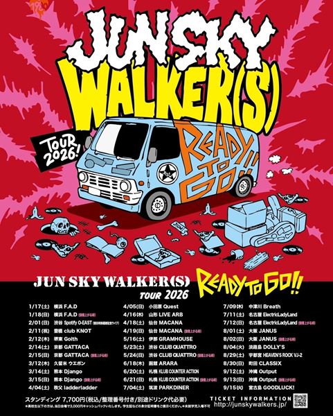 ぴあ 総合TOP > JUN SKY WALKER(S)、2026年全国ツアー『JUN SKY WALKER(S) TOUR 2026 READY TO GO』第1弾スケジュールを発表