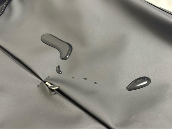 そして、本体生地には防水機能付き!実際に水を垂らしてみると、見事に弾いていました。