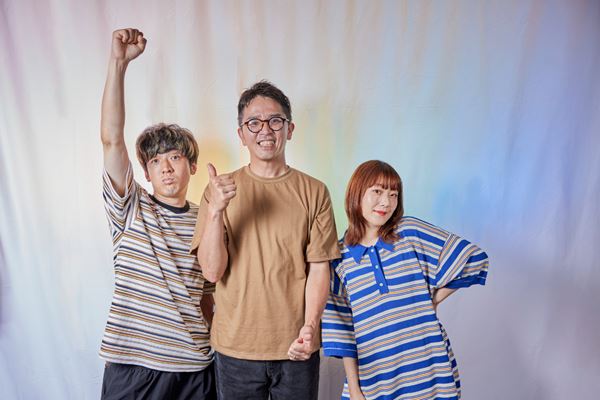 左から 長島涼平(b&cho)、三浦太郎(g, vo&cho)、えみそん(vo)