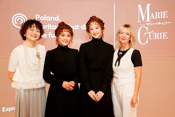 すべて見る黒のワンピースに身を包み、ゆるくまとめたアップヘアというふたりのマリー・キュリー(昆夏美・星風まどか)が、「EXPO 2025 大阪・関西万博」ポーランドパビリオンに現れた──。ポーランドが生んだ世界的科学者であり、2度のノーベル賞を受賞したマリア・スクウォドフスカ=キュリーの揺るぎない信念を描いたミュージカル『マリー・キュリー』。2018年に韓国で初演され、多くの演劇賞を受賞。2023年には日本初演が幕を開け、大好評を博した。そして2025年、キャストを一新しての待望の再演を前に、8月25日、マリー・キュリー役の衣装で臨んだ昆と星風、演出の鈴木裕美、日本国際博覧会ポーランド政府副代表マルタ・ジェリンスカの4名が出席する取材会が、ポーランドパビリオンのコンサートホールで行われた。