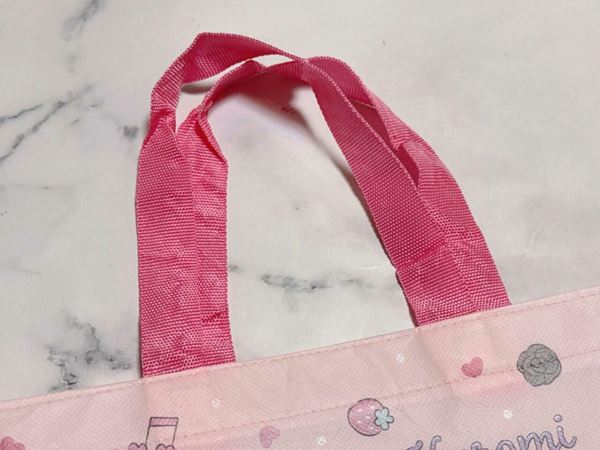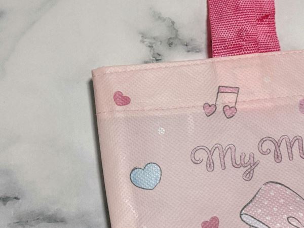 素材は塩化ビニル樹脂。ピンクカラーにかわいいマイメロのイラスト入りデザインです。
