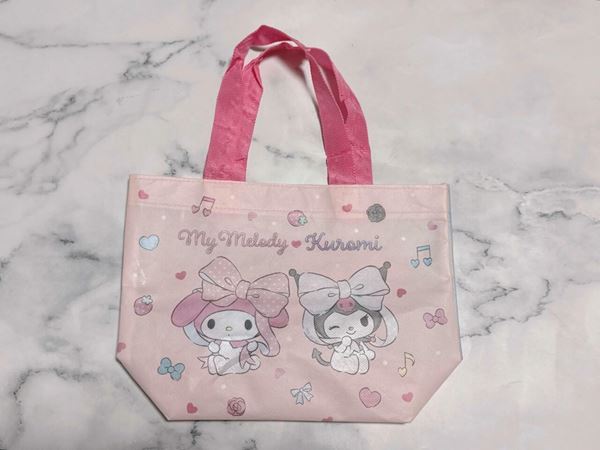 両面にマイメロ&クロミのイラストプリント入りデザインで、リバーシブルで使えるのもうれしいポイントです。