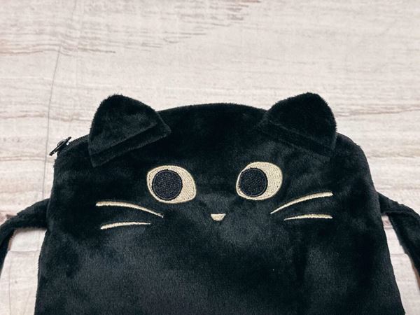 黒ネコのダイカットデザインの縦長のリュックで、お顔は刺繍で描かれています。黒目以外のお顔のパーツはゴールドで刺繍されており、かわいいながらもちょっぴりミステリアスな印象でハロウィンムードが高まります♪