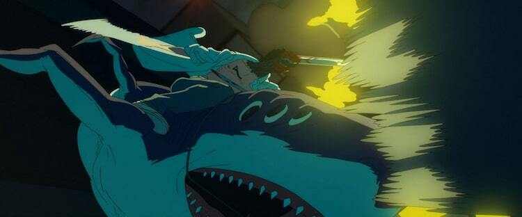 とはいえ、「レゼ篇」はサメ映画である以前に、まずアニメーション映画として圧倒的にすごい。正直に言えば、そこら辺のサメ映画よりもよほどすごい“サメの画”が観られる。サメ映画ファンなら誰もが一度は夢見た「こんなサメの動きを観てみたかった!」というシーンが、作画の力で実現してしまっている。