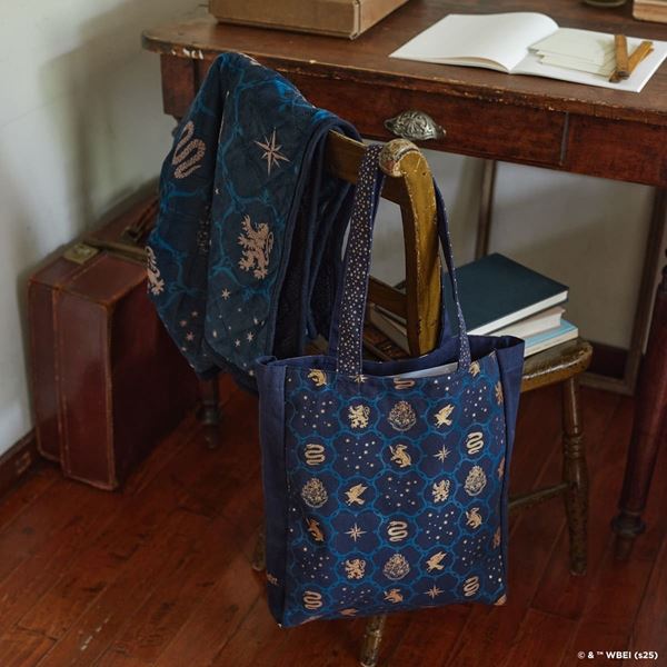 特に深みのあるネイビーをベースにホグワーツ魔法魔術学校の4つの寮章をあしらった「パスケース」や「トートバッグ」、「ステンレスボトル」などは、自分も魔法魔術学校に通っているかのような気分が得られるかも。