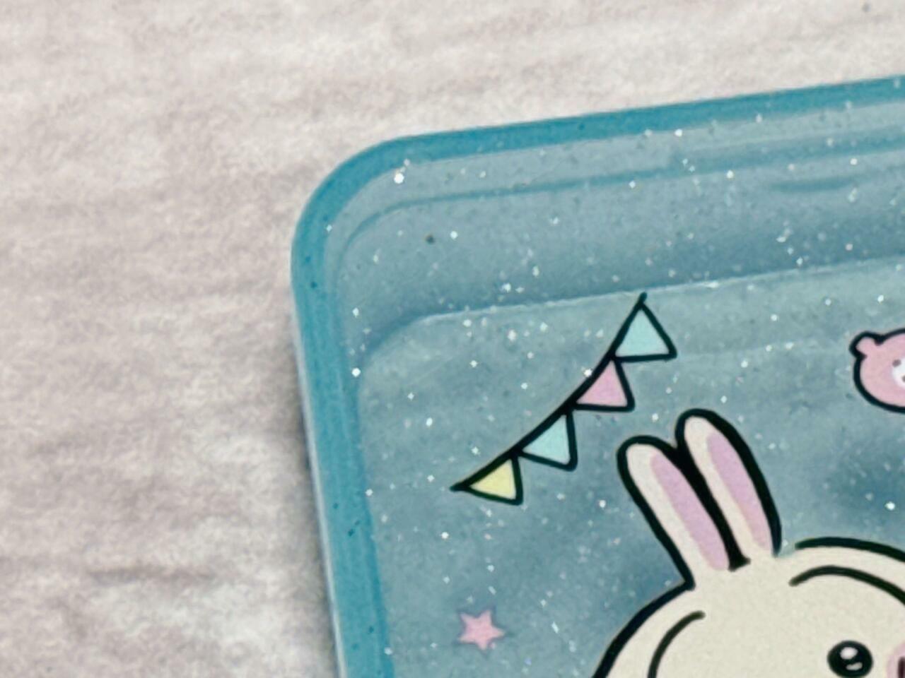素材はプラスチックで、カラーはクリアブルーです。透明感のあるクリアブルーにキラキラのシルバーラメがかわいすぎる〜!角度を変えるとラメがキラキラ輝き、付録とは思えないほど美しく煌めきます!