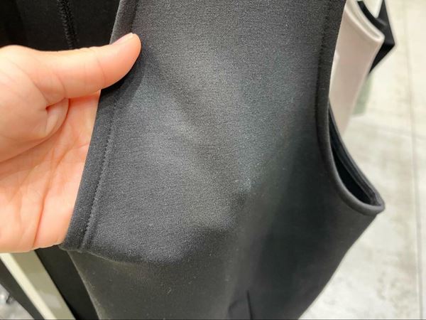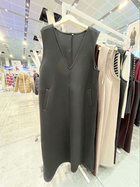 アジャスター付きの肩紐で丈感の調整も可能。また、サイドスリット入りで動きやすく、秋冬にも快適に着られそうです。